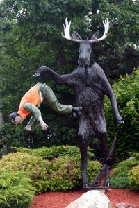 I was thinking about the trip my parents and I took last summer to Canada. And recently I found some comments online about this place we visited—Frontier Village in Sault Ste. Marie. If you read my post on it, I stated that it was a couple of shops, a fry stand, and ice cream place with some wooden statues of Wild West characters scattered around. We missed it several times (it was right on the side of the big highway) and even asked for directions to it from a local who gave us a weird look. But, here is how two Web sites describe it.
