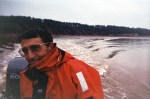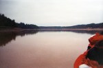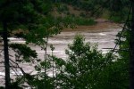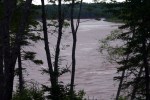 So here’s what happens that makes it kind of interesting. The tide comes in from the ocean and gets funneled into the bay and then into the Minas Basin. It then gets funneled further into a narrow river called the Shubenacadie (Shoo bin ack uh dee). When the tide goes out, the river is almost drained dry—lots of sand can be seen and the water that is left is extremely shallow. Then, when the tide comes in, it meets the water that is receding and forms what is called a tidal bore. A wave.