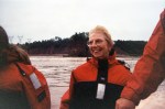 And with that we hit the fast running water and he proceeded to drench us in the waves. The last bit of dunking managed to throw me and another camper off the side of the boat. I don’t remember much—just that Travis said not to hold on to the boat or we’d get sucked under. That was precisely what was going through my mind when I was under water. That and getting caught in the motor. But my Dad, who was halfway out the boat after I went over, said I “popped” right up. Yeah. Popped. I swam very hard to the surface with a ton of waders and wet shoes on. But all was well. I got into the boat and up the mud banks back to our warm cabin all safe and sound. Funny how the pulled muscle in my back didn’t hurt until much later.