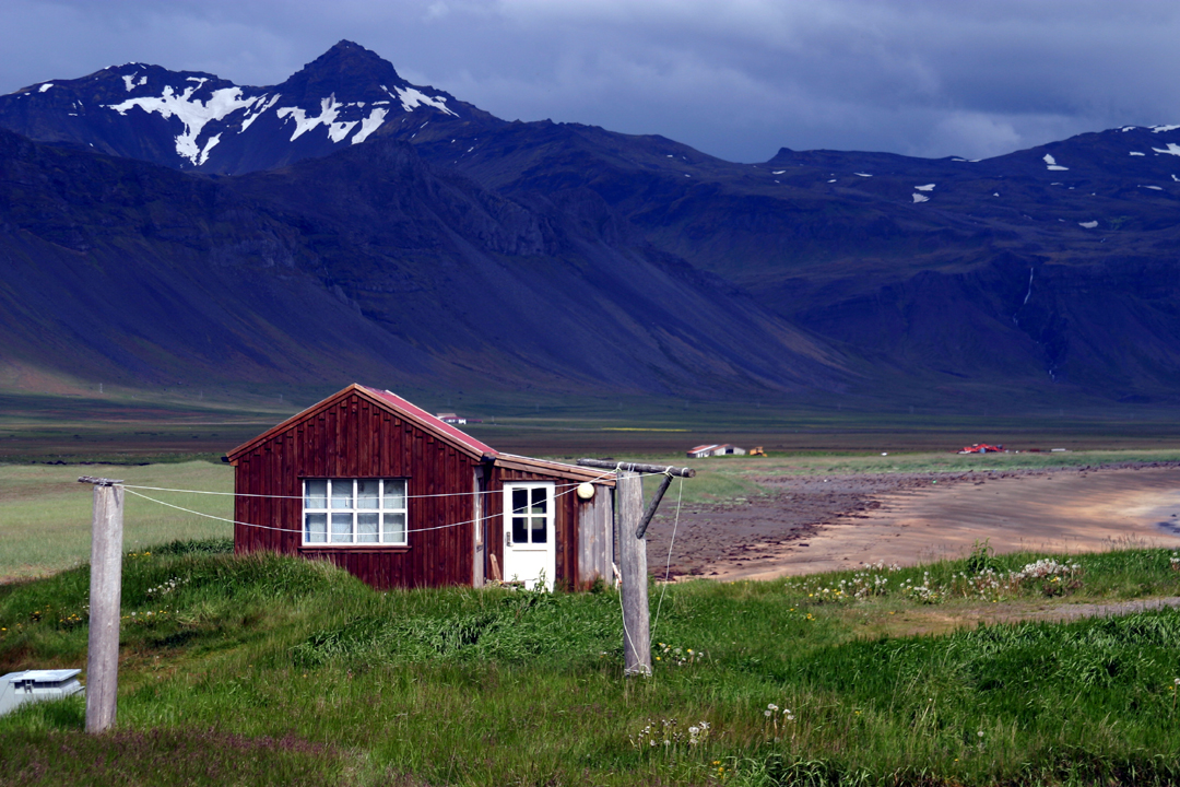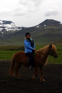 The sun came up just in time for us to get a fabulous view of the Snaefellsness glacier. As we drove, the scenery just changed from beautiful to a different kind of beautiful. Our final stop of the day is ahead—at a local farm. We get out to see a yard full of the unique and wonderful Icelandic horses that we’ve seen everywhere on our trip. Amy is going to partake in a trail ride while the rest of us tour the farm and pet the dogs. Yup, they had those friendly dogs we saw previously on our trip. They are super friendly and cute. We walked along the coast—the farm was on the water with the glaciers and mountains on the other side—not a bad way to live if you ask me.