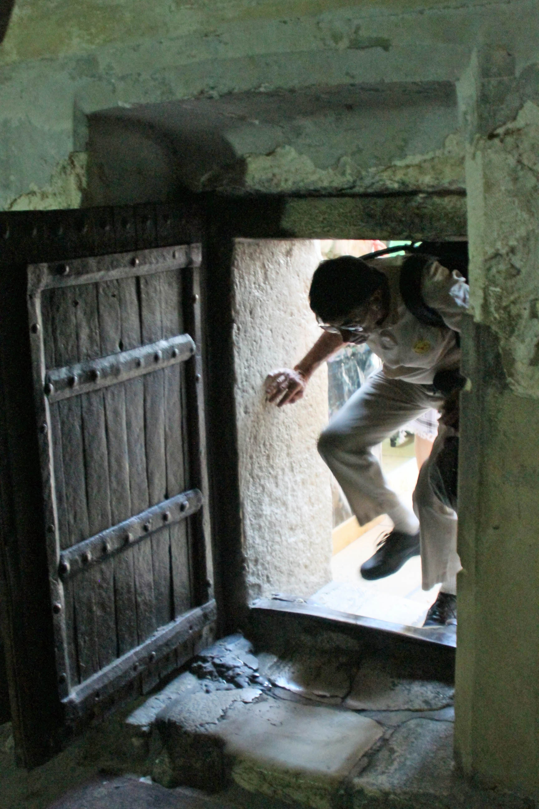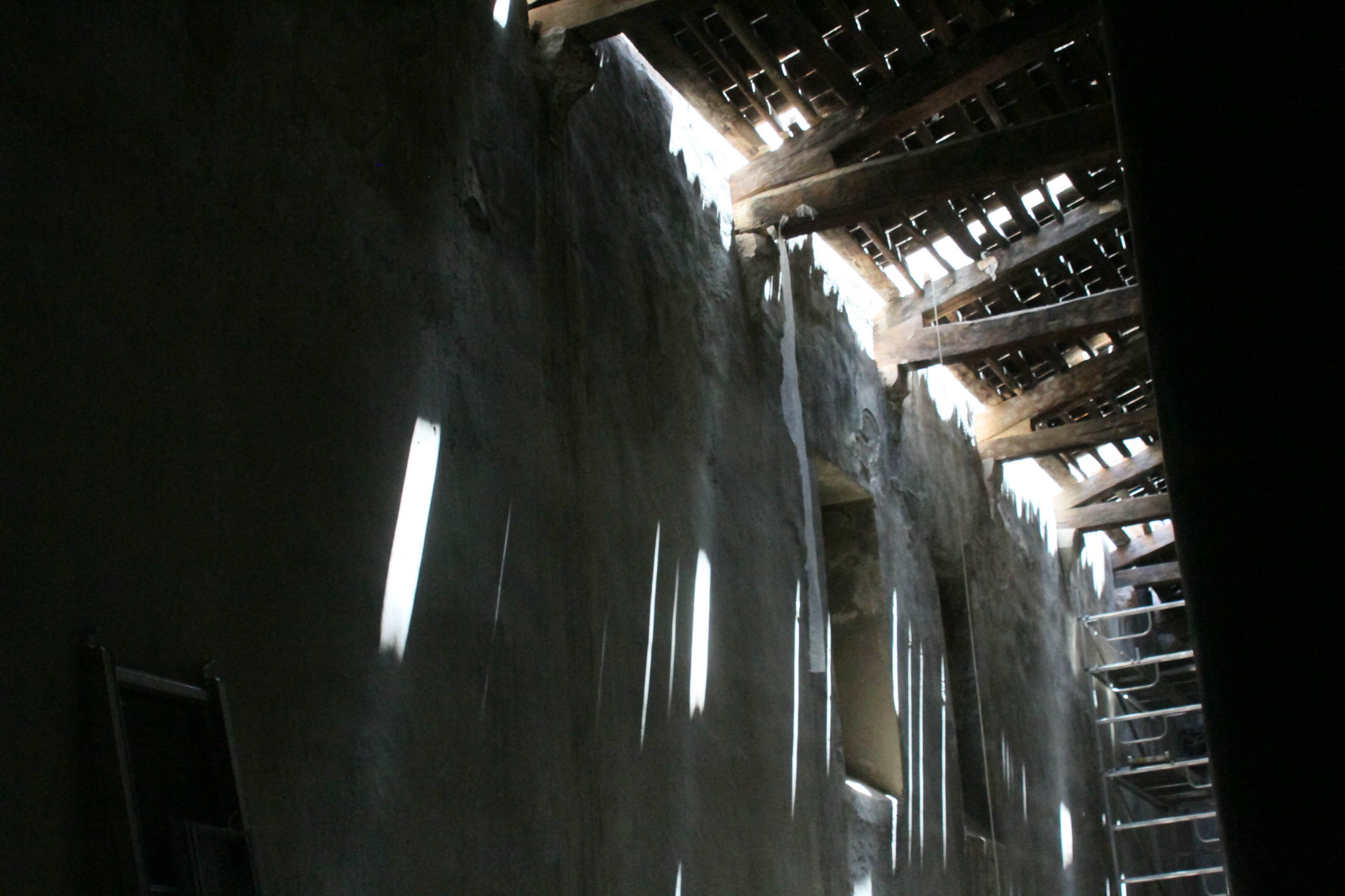 Leaving the area where the birth cave was located and walking into another church connected to it where the holy family lived. The walls reflect the light coming through slats in the roof.