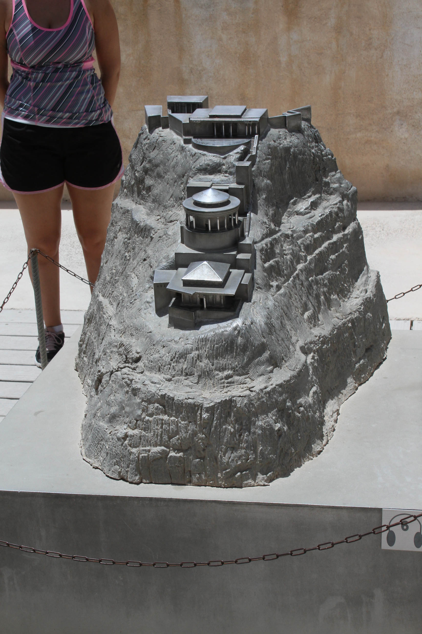 Masada was a fortress palace built by the crazy and paranoid King Herod. It’s in the middle of nowhere overlooking the Dead Sea. In ancient times, the only way to get to the compound was via the snake path, a narrow, windy path that snaked up the mountainside. Anyone climbing the mountainside could be viewed for many miles by the guards (and killed if you were an invader). An extensive and brilliant water system allowed anyone living in the compound to have access to plenty of water to survive for a long time. Huge cisterns and long storage buildings provided enough food and water to sustain the inhabitants through many months of siege.