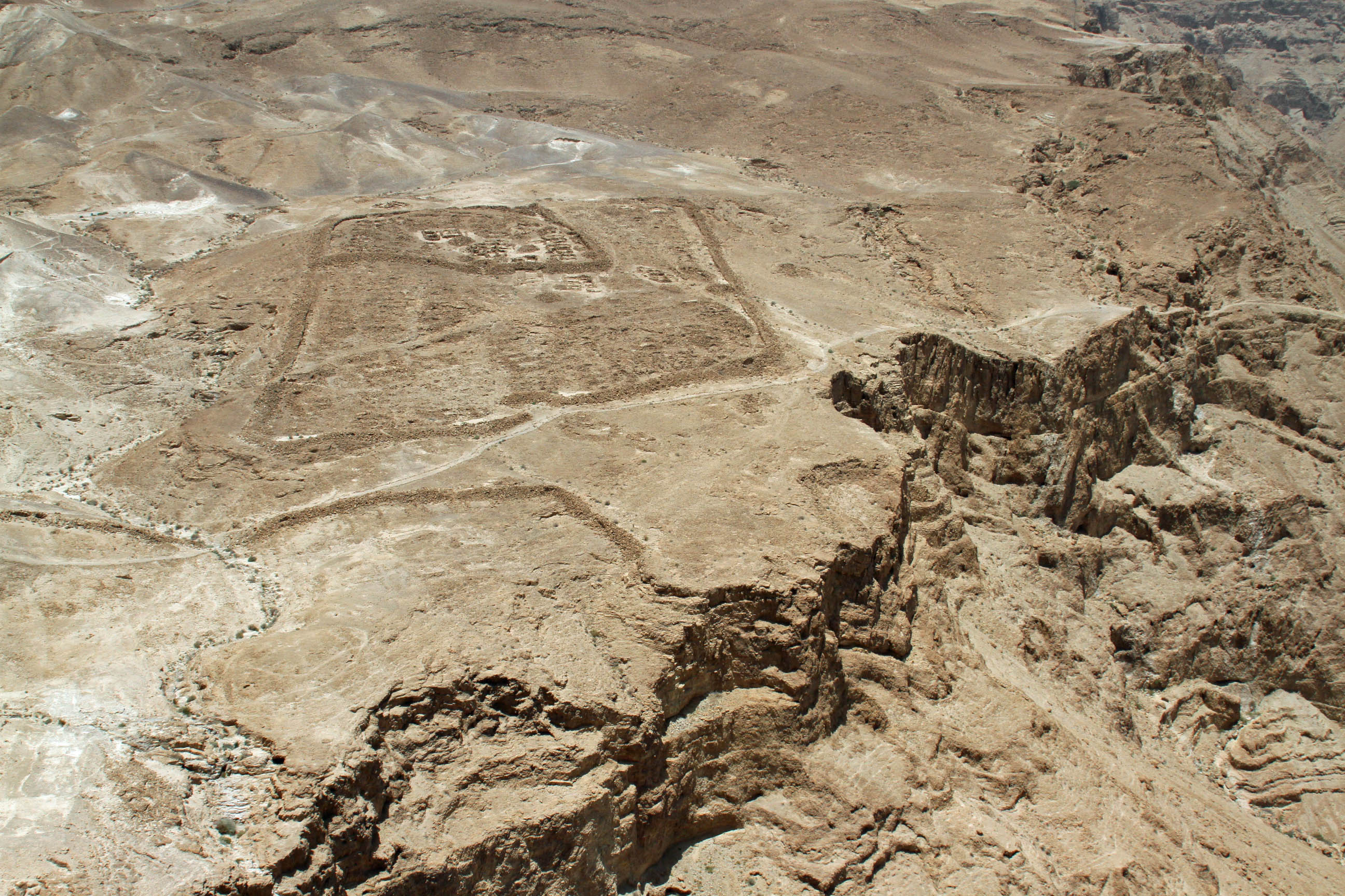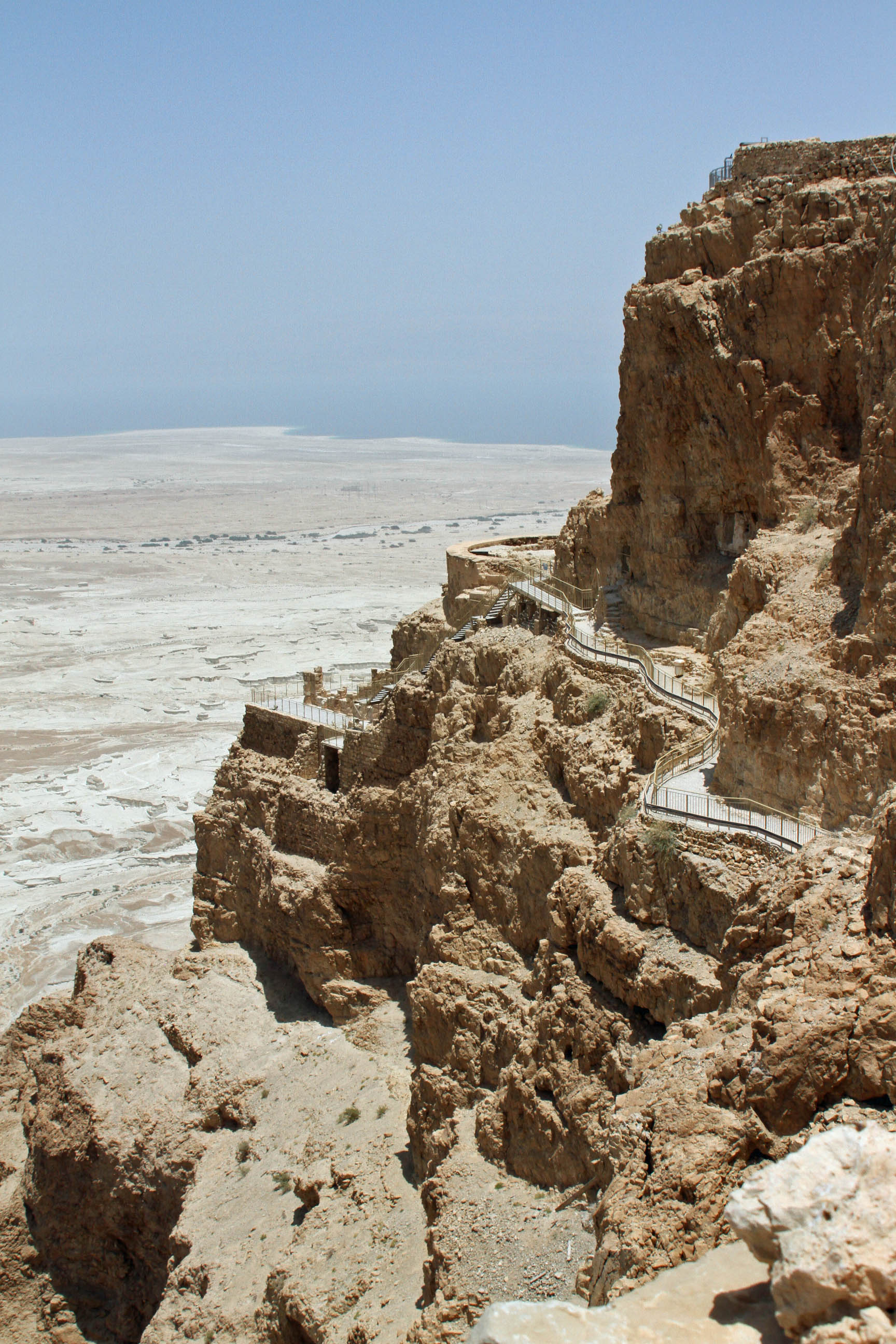 A view of Masada, the palace was spread across several layers. The path to the water cisterns can be seen along the side.
