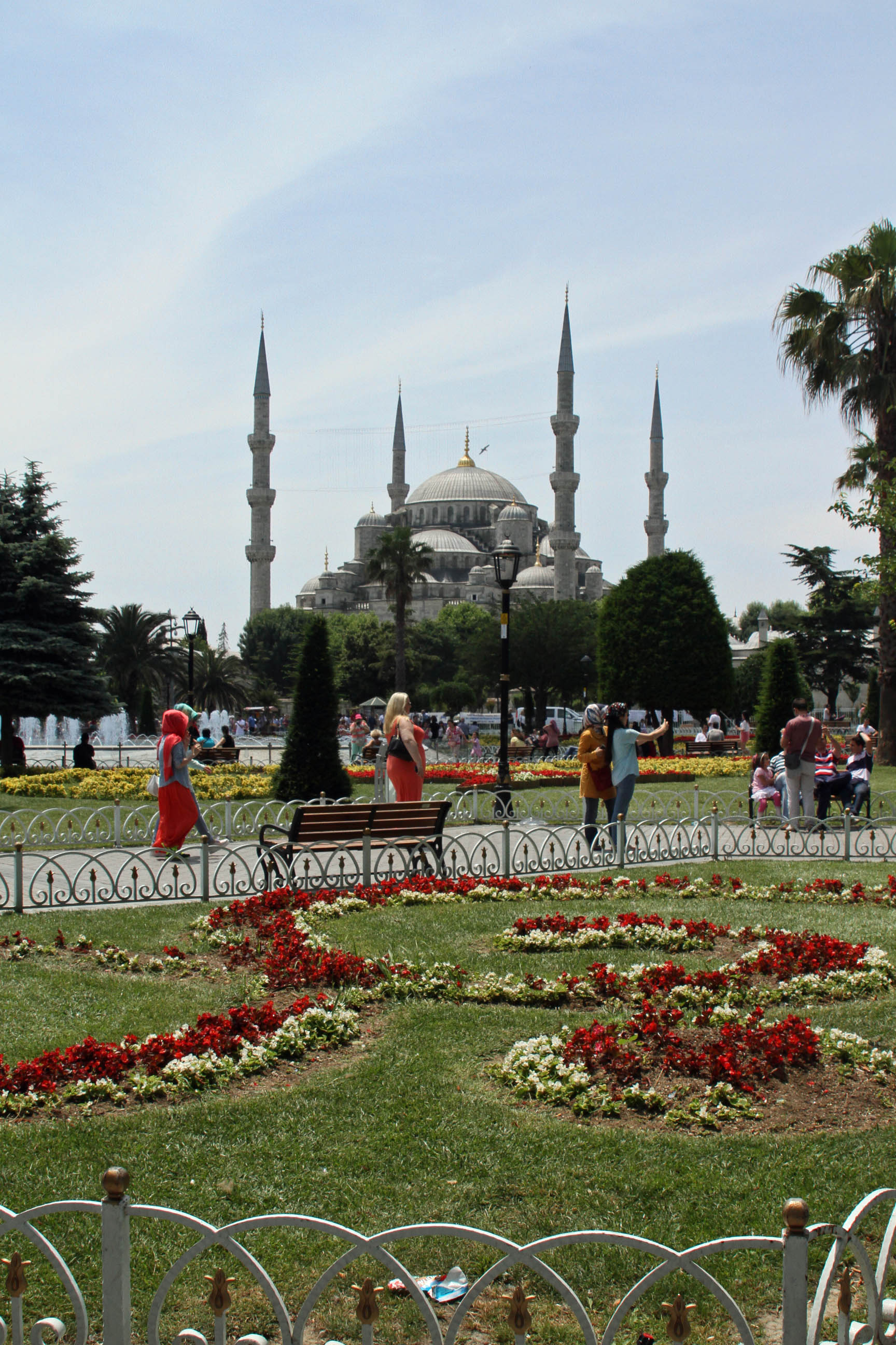 Upon leaving the Blue Mosque, we turned in our scarves and put our shoes back on and then traversed the streets and gardens to make our way over to the very famous and ancient Haggia Sophia.