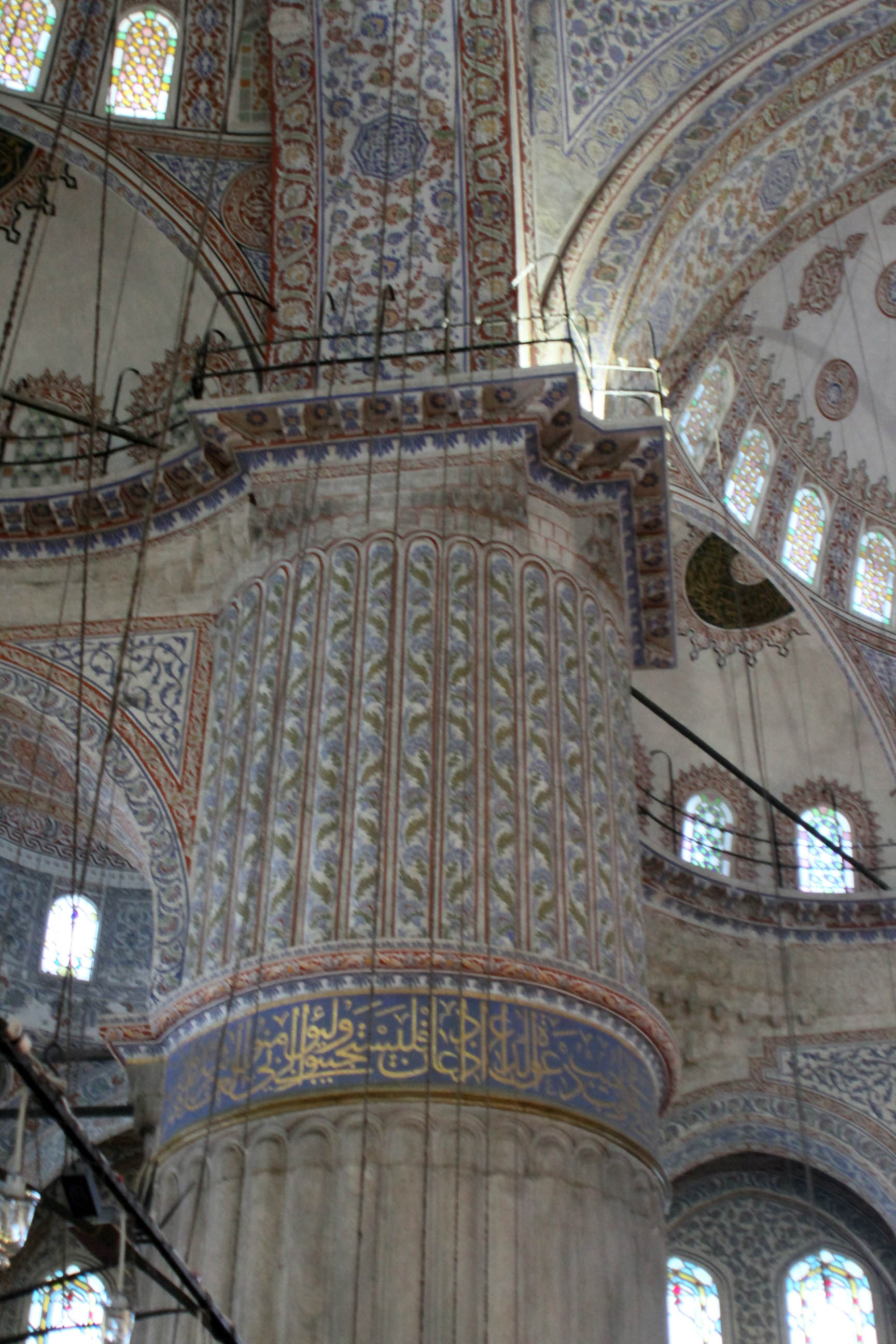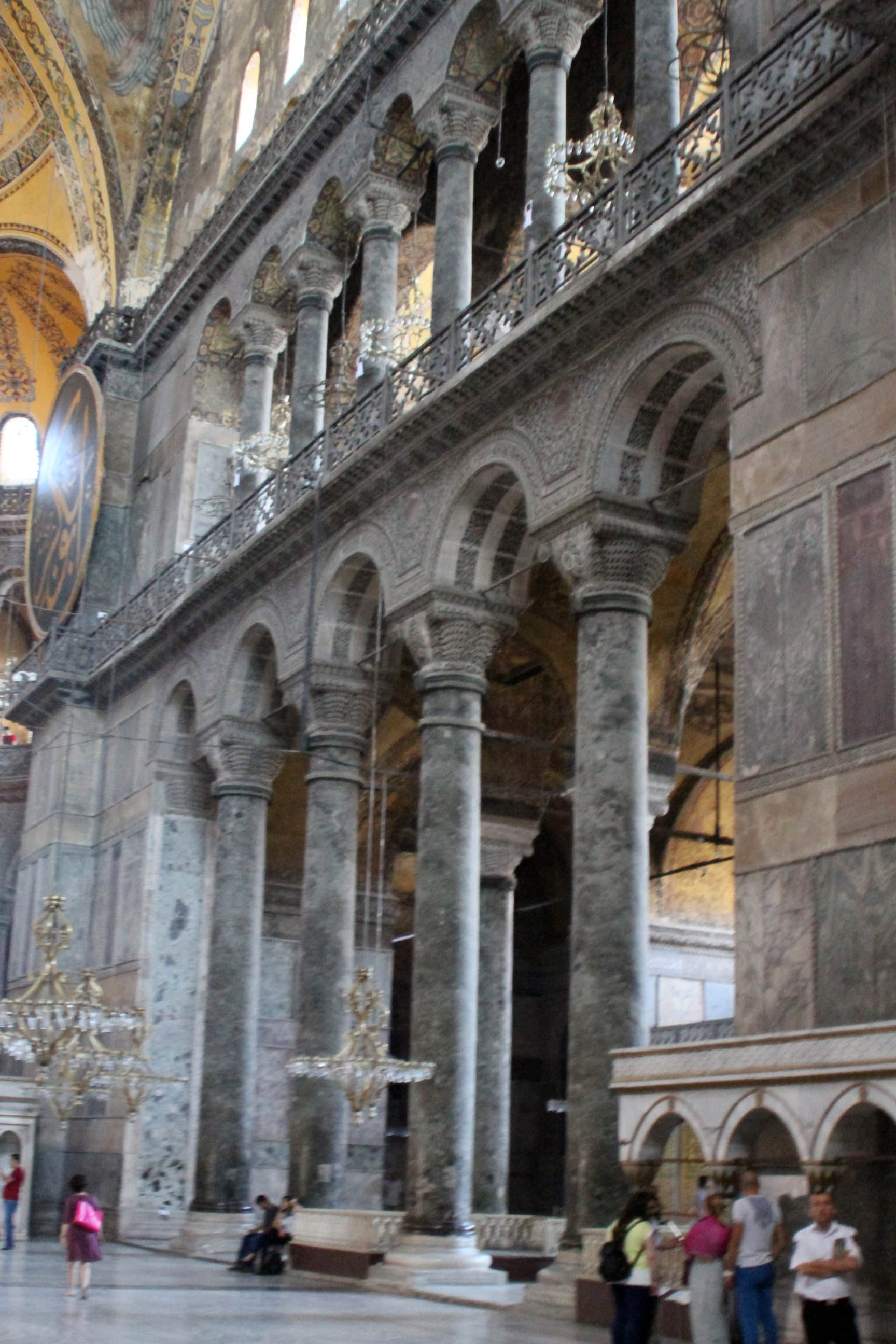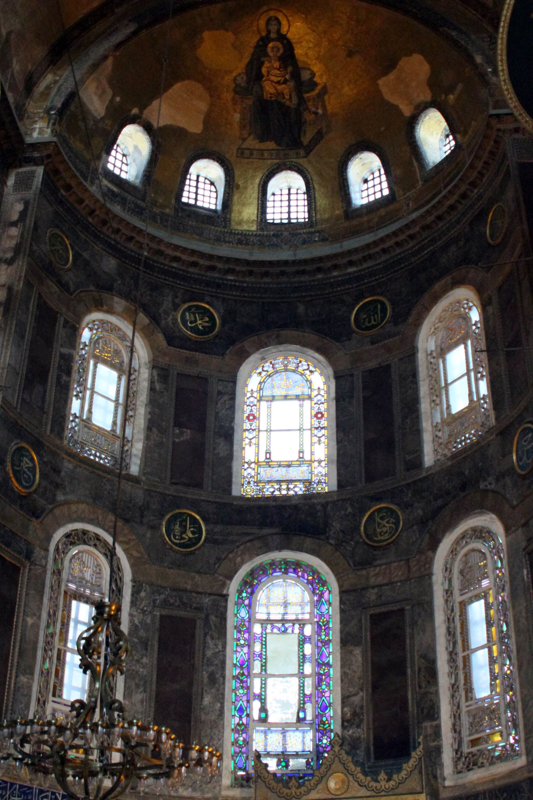 I found it to be not only beautiful but also interesting in that both Christian and Islamic elements were seen throughout the building. Gorgeous paintings on the ceilings of angels, large chandeliers, marble designs and so on caught our eye. It is an epic example of Byzantine architecture and is decorated throughout with mosaics and marble pillars. It’s hard to describe the feeling of being in this ancient church but the photos capture some of its glory. There was scaffolding covering parts of the building as its restoration is a continuous process.