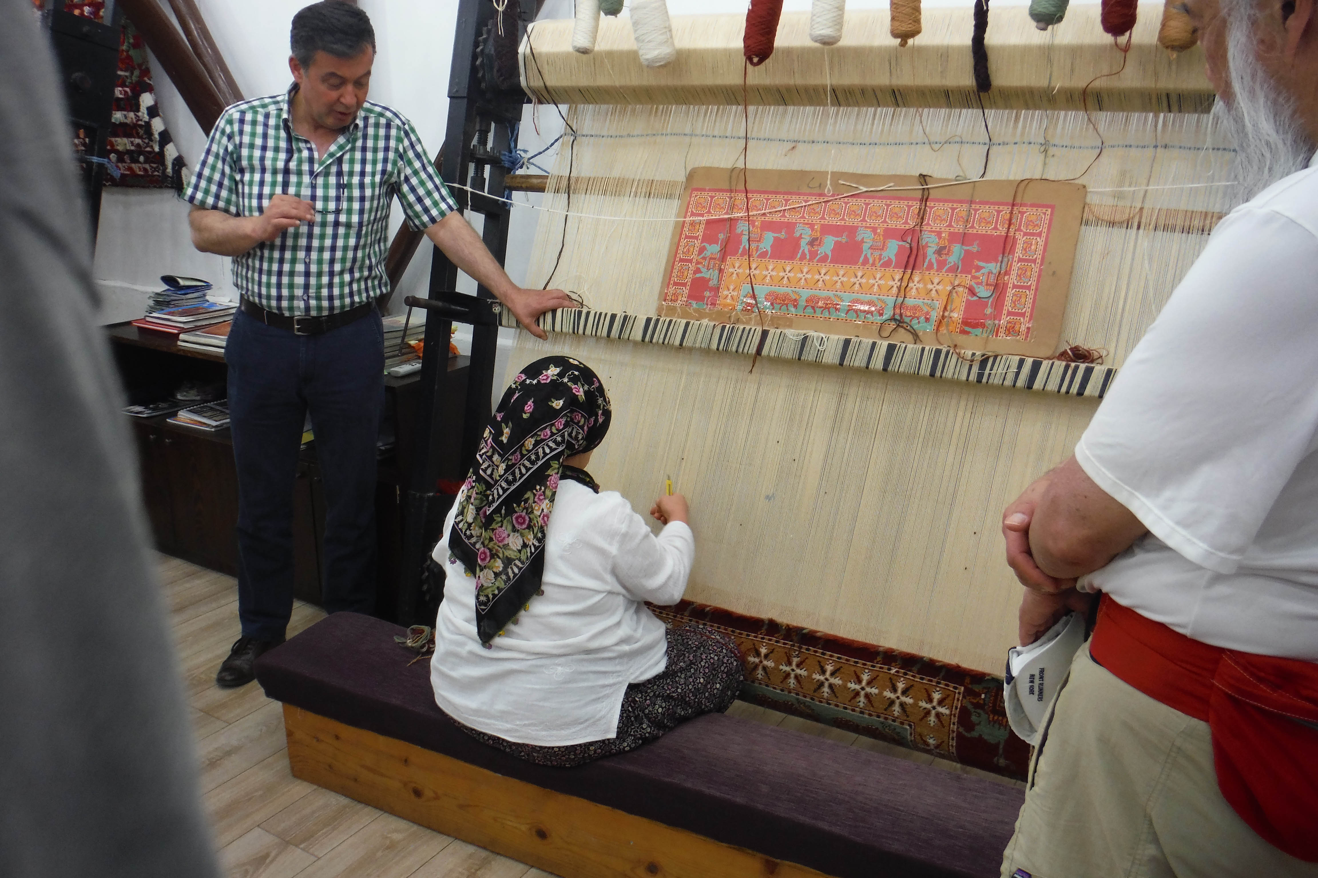 On our way back to the hotel we stopped at the Turkmen carpet store and got a mini tour and demonstration on how the beautiful carpets are made. We saw how the silk gets pulled out and and how the women made the double knots that make these carpets so strong.