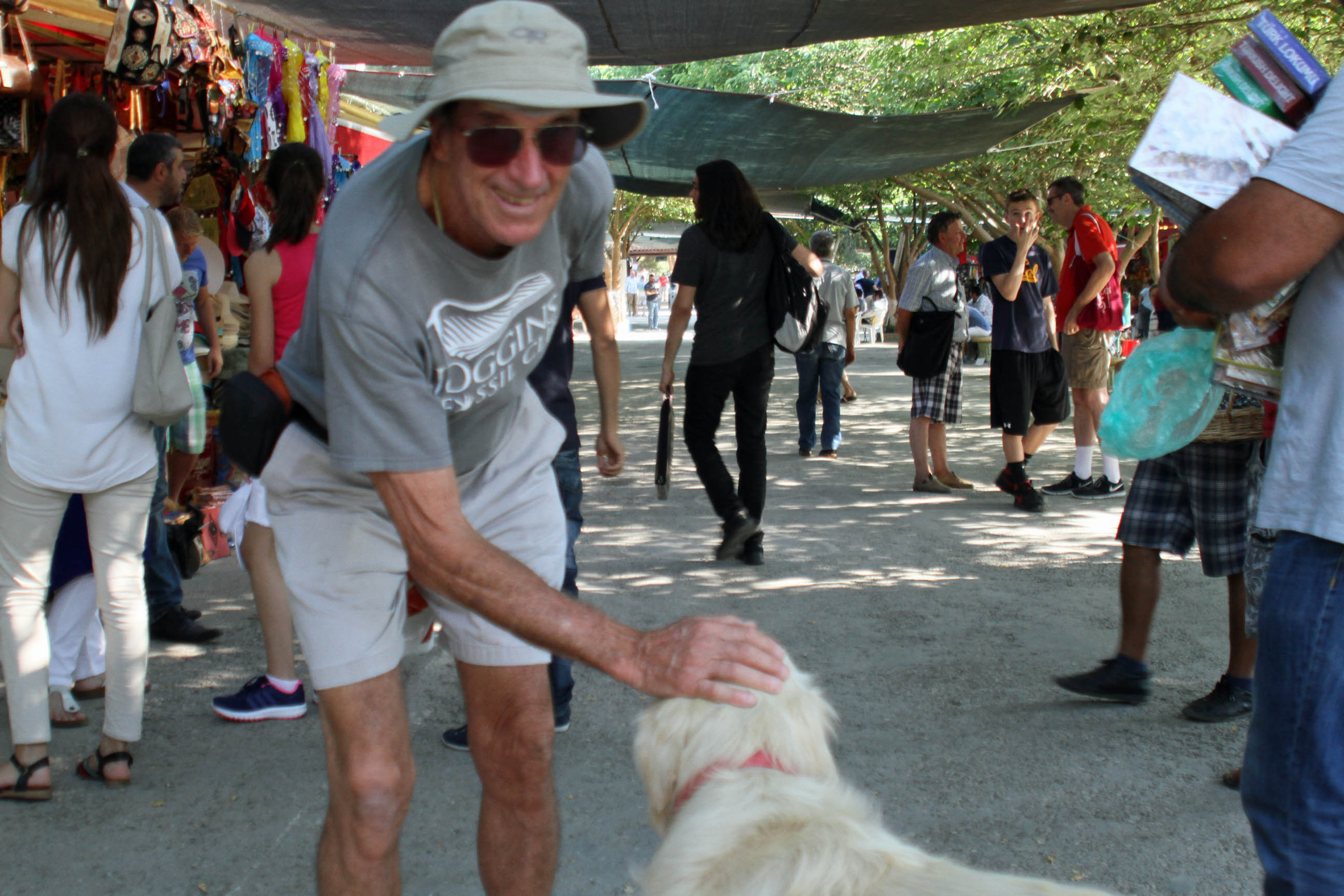 We came out of Ephesus into the tourist area where one entrepreneur was selling fake genuine watches. I bought some Turkish Delights to take home to my colleagues while Dad made a friend with a cute retriever who made a bee line to him—instinctively knowing he would be cuddled and possibly fed.