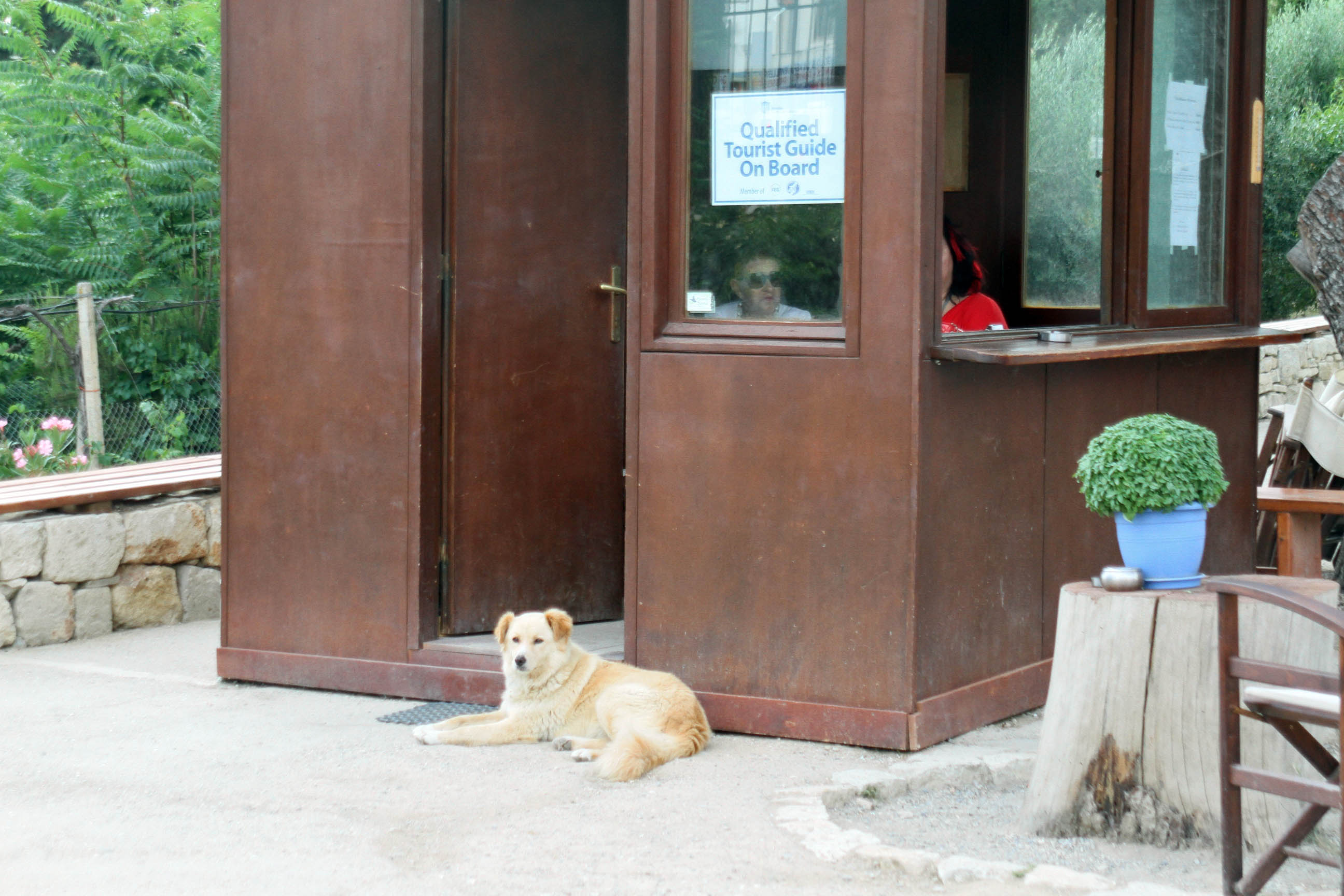 Our morning stop was Crete. My dad and I took an excursion to Knossos, Europe’s oldest city where we toured an ancient excavated town. At the entrance was of course a dog guarding the ticket booth. The sign above him said tour guides were available—not sure he was suitable for that.