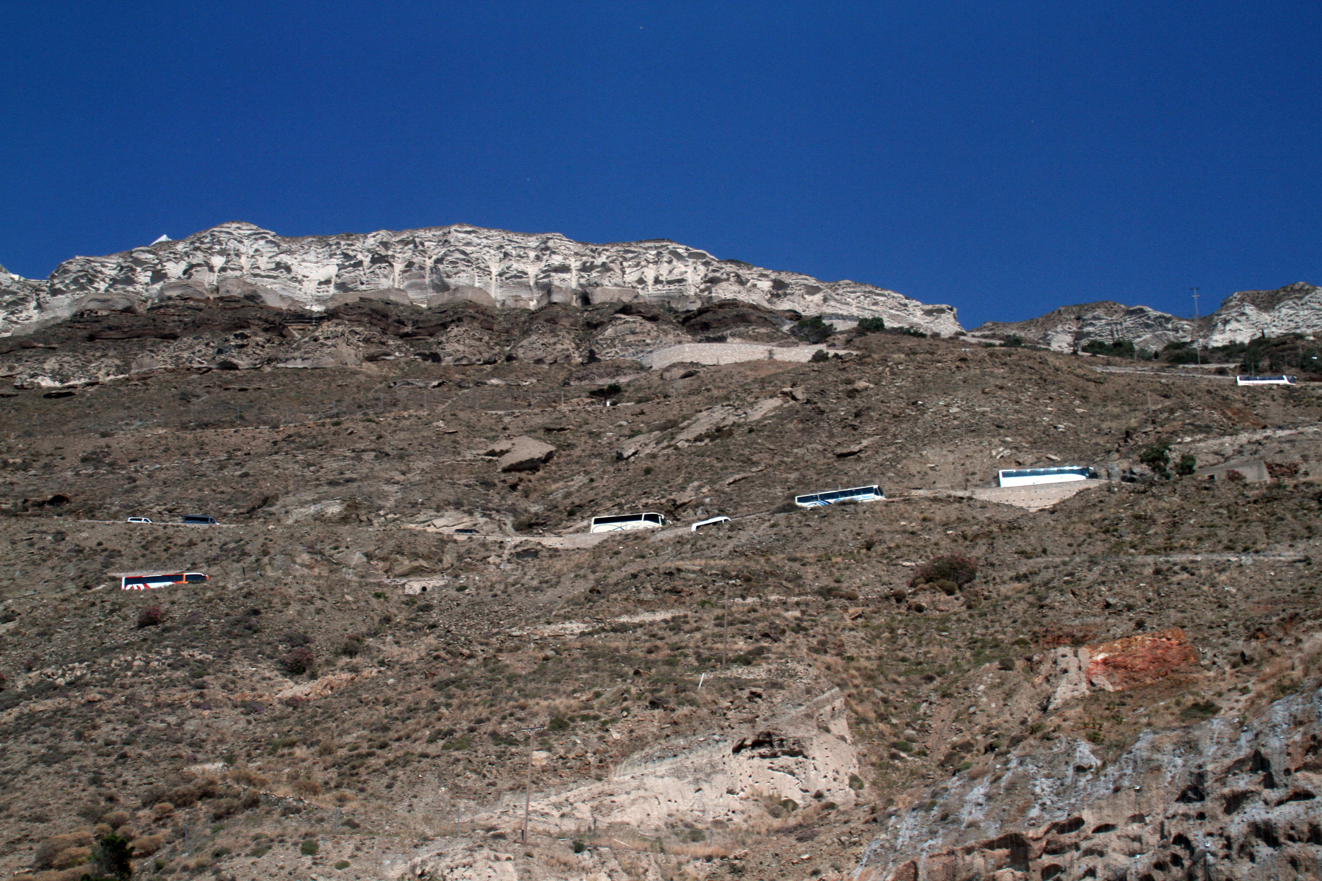 Our final stop was the famous island of Santorini. If you haven’t seen photographs of the white houses topping the cliffs of this large caldera, then you’ve been living in a cave. As we got closer to the island, we could see the entire caldera. You see, the island is actually the partial remnants of a volcano and the non-submerged parts make up a very large caldera.