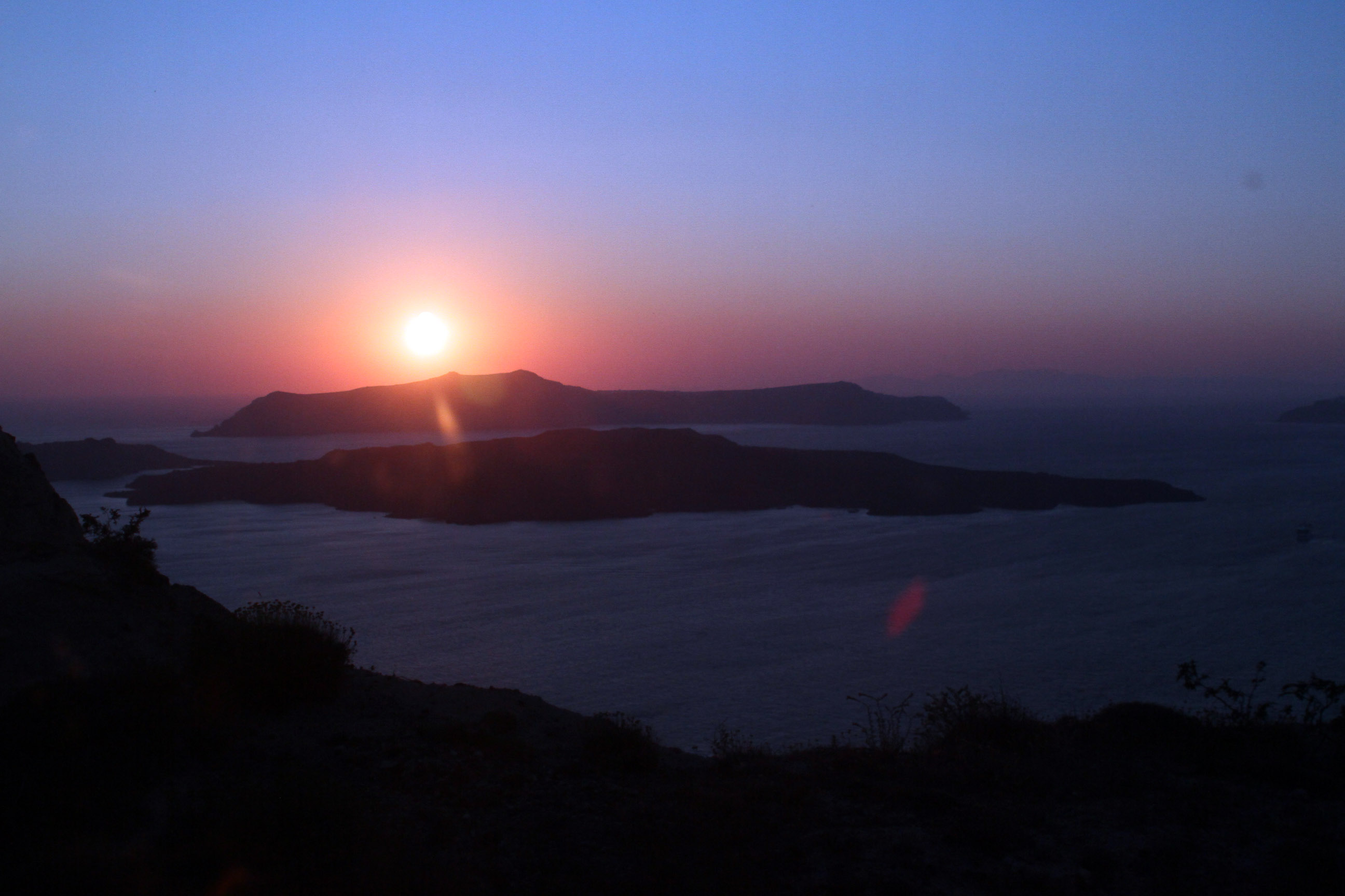 A tiring day was brought to a close with a gorgeous sun setting over the other islands in the caldera just as we were descending the large cliff back to the ferry.