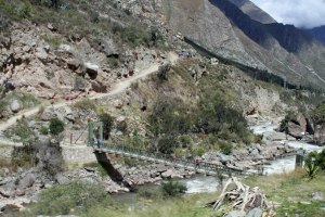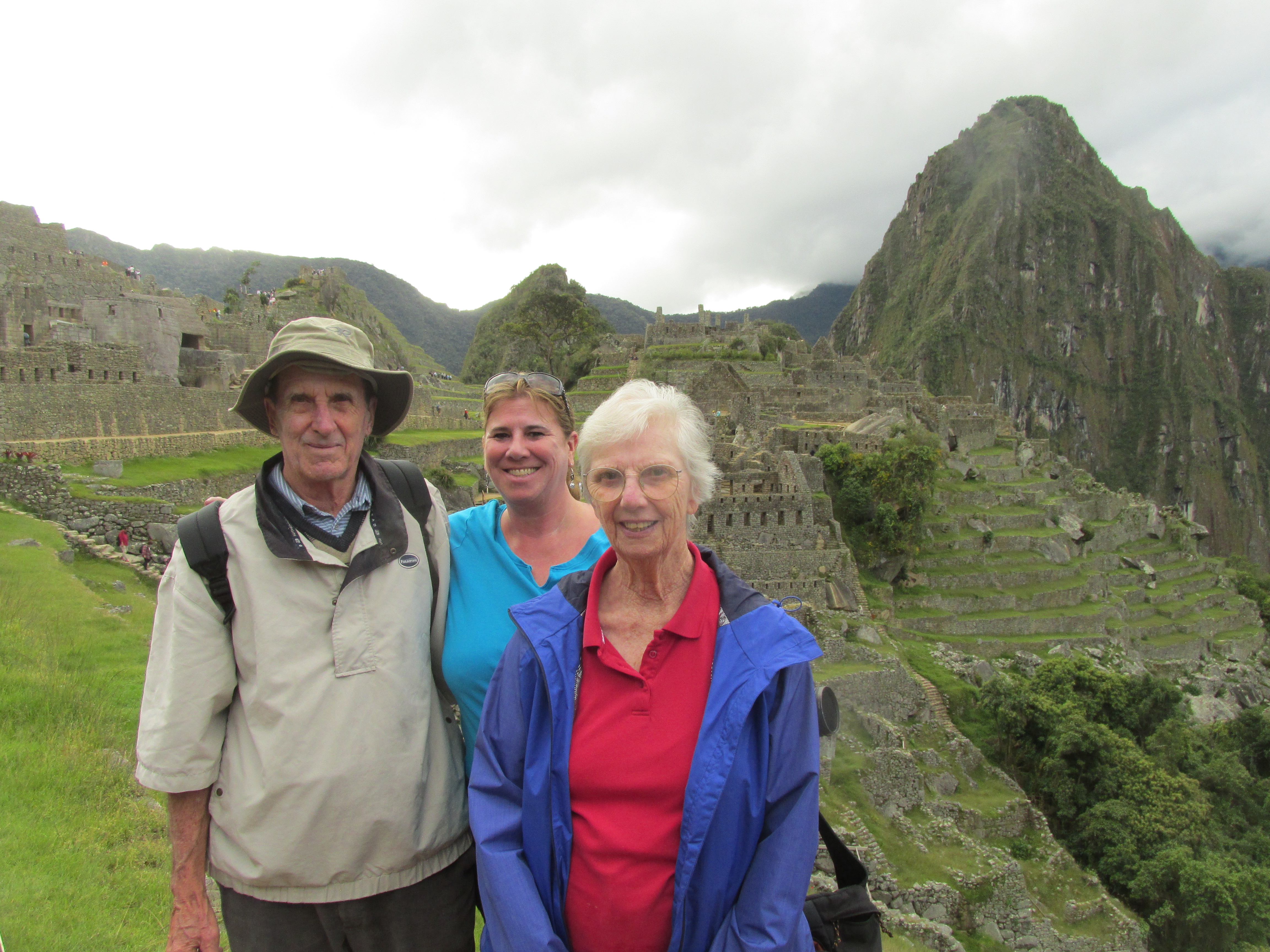 Our Peruvian adventure continued with a train ride through the countryside to Machu Picchu. Along the way we passed by the beginning of the Inca trail. This is the 28 mile trail people hike to Machu Picchu, but the entire “trail” is much longer and starts back near Cusco. In fact, the Incas actually created 24,000 miles of trails through South America. The people are more adapted to the elevation and can handle the hiking better than the rest of us. How they carried their stuff or walked on the uneven stones without hurting themselves is a mystery.