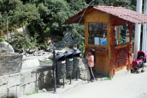 The ride along the river to the mountain was filled with gorgeous scenery and when we pulled into the town at the base of the mountain, I was amazed at the smells—good food cooking, all the hotels, buses, people, guys hauling drinks and supplies, and a market jammed with stalls of people selling lots of souvenirs. There’s not a lot of room in that valley and with so many more visitors showing up every year, it’s packed to the gills with entrepreneurs staking their claim.