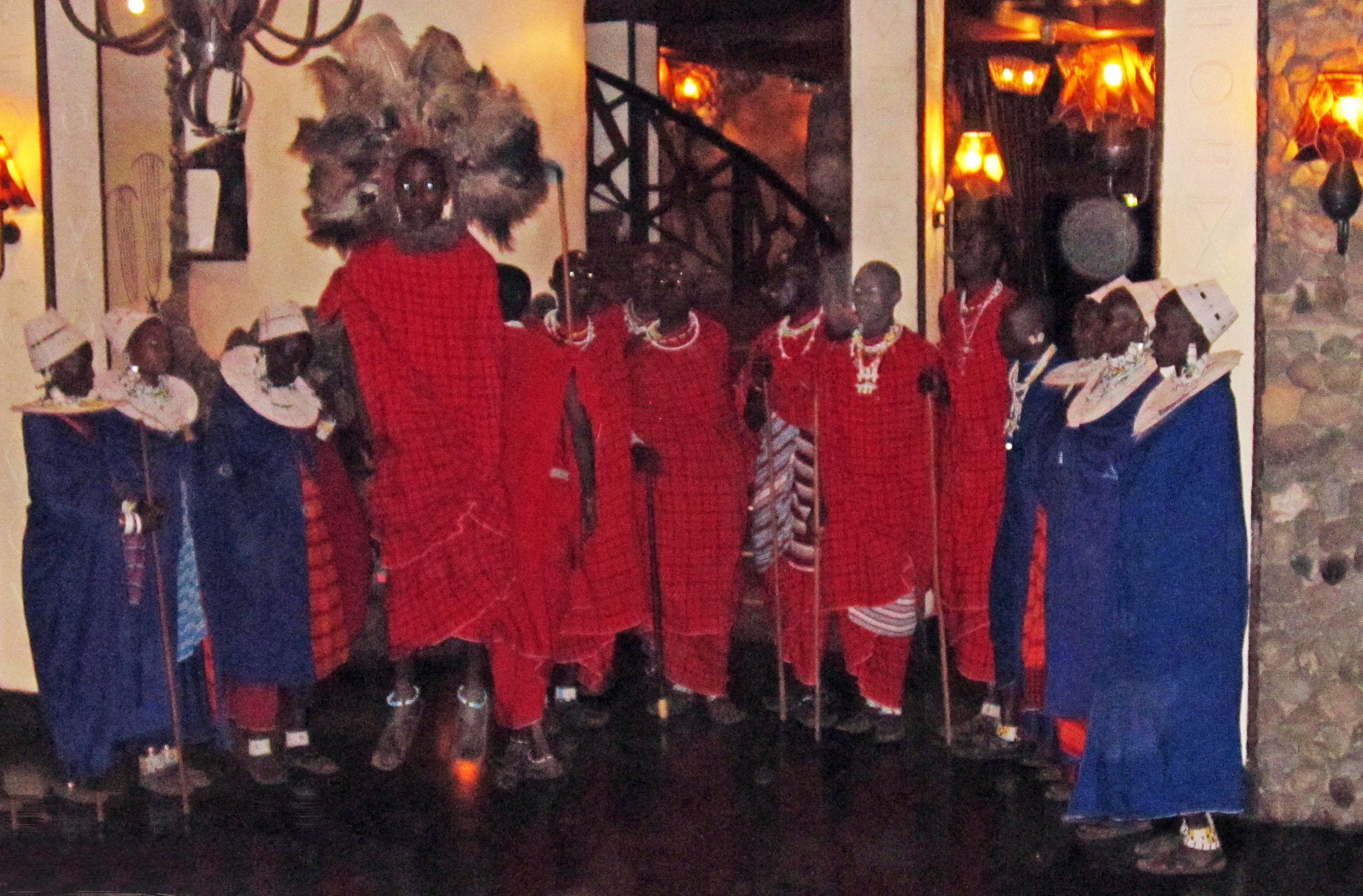 Coming to the end of our wonderful safari, we flew to our last stop, the tent hotel in the Masai Mara. Roughing it is not how I would describe these gorgeous canvas covered hotel rooms along the Mara River. Once again, getting there was via a little air strip and as we arrived, the Masai had set up a “duty free shop” selling spears and other chotchkies. I kept my tent flaps wide open all during the first night, listening to the animals—including the hippos who were floating by in the river below.